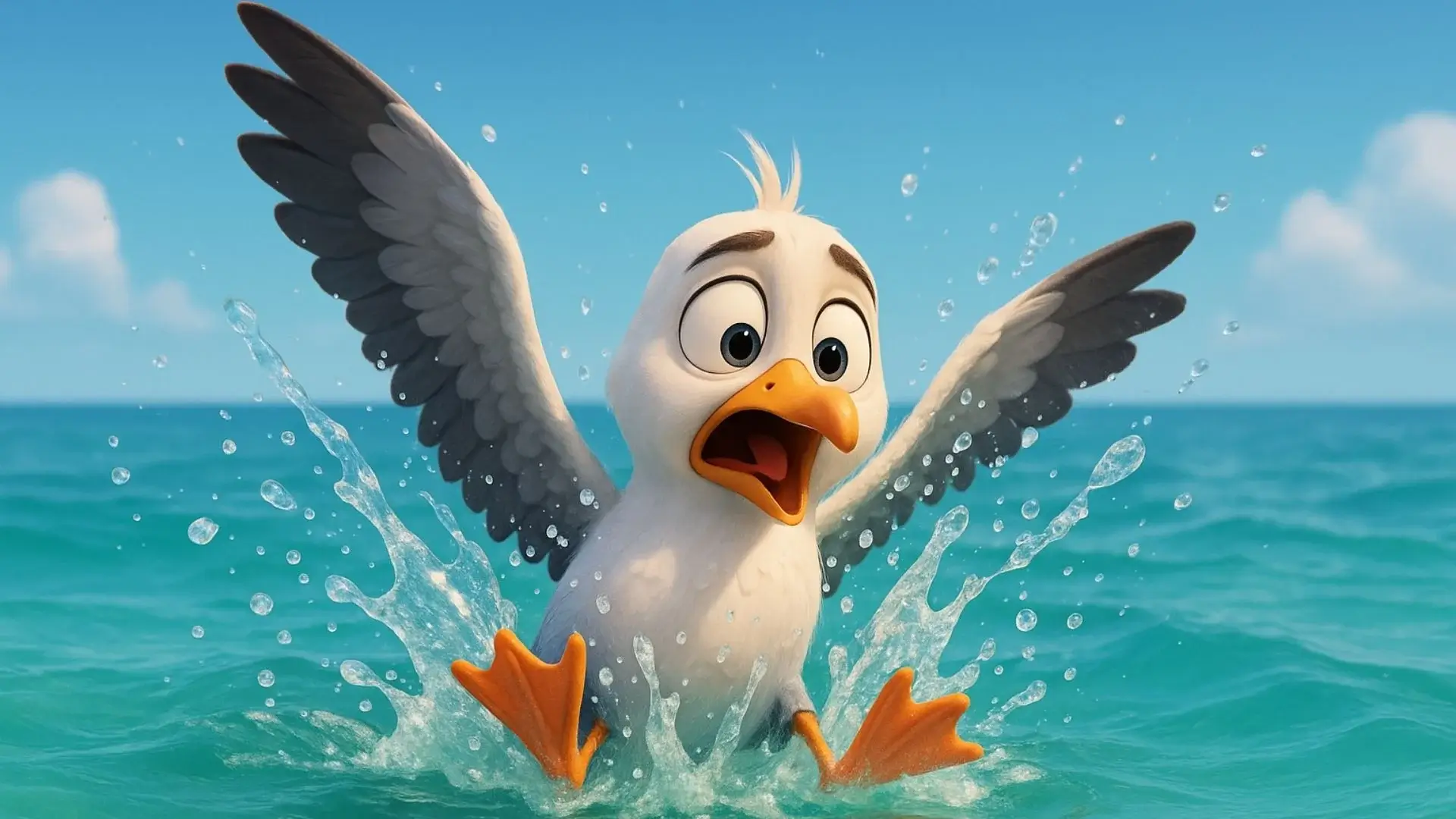 Kayaların üzerinde dengeli adımlar atmaya çalışmış ama ayağı kaymış ve kanatları açılmadan kendini mavi suların içinde bulmuş. O an bir korku yaşamış ama suyun dokunuşu onu şaşırtmış. Beklediği gibi yakıcı değil, tam tersine serin ve ferahlatıcıymış.