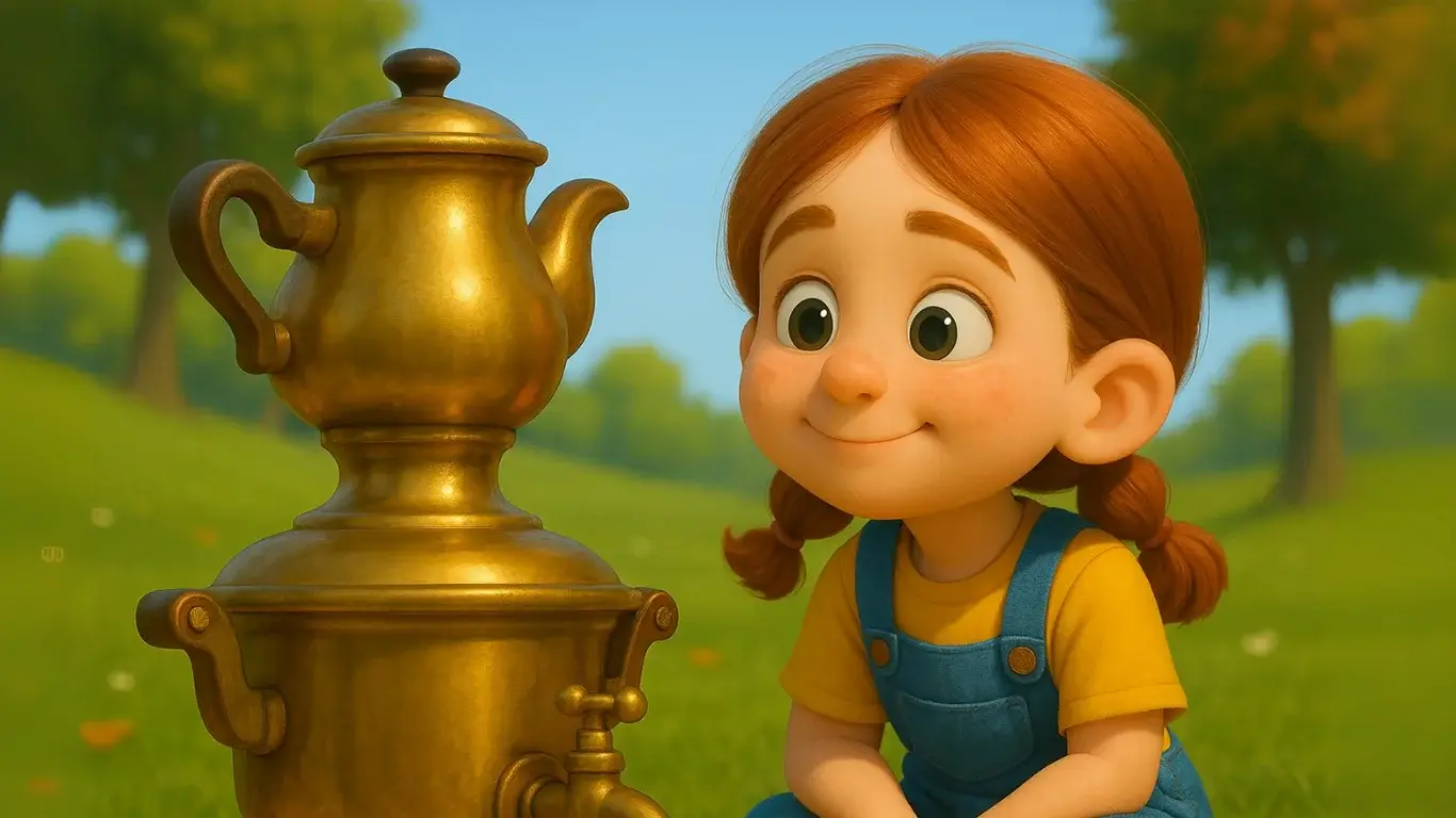 Dede hemen semaveri çıkardı. Gümüş gibi parlayan kocaman bir şeydi bu. Gülce, hayranlıkla yanına gitti.