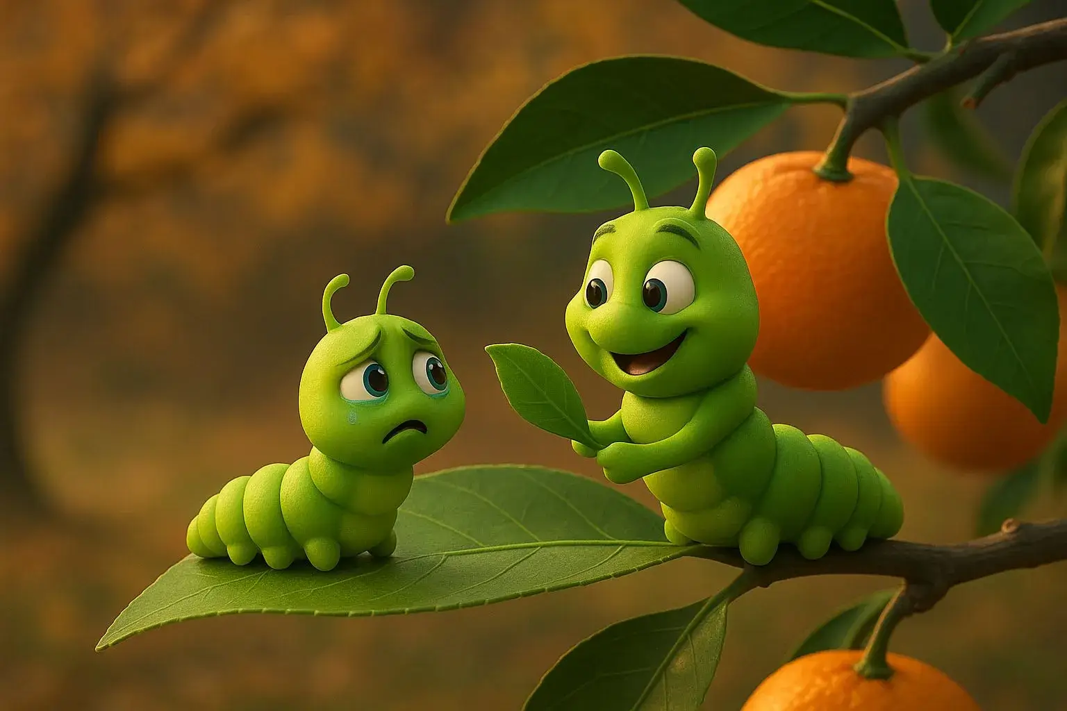 Yakındaki bir daldan Mina adında başka bir tırtıl yaklaşmış. Sesi yumuşak, gülümsemesi güven verirmiş. “Mevsimler, doğanın nefesidir,” demiş. “Biri biter, diğeri başlar.” Tırtık şaşırmış, “Yaz neden bitiyor? Her şey neden soğuyor?” diye sormuş. Mina, ince bir mandalina yaprağı koparıp uzatmış. “Tatmak ister misin? Sonbahar böyle kokar.”